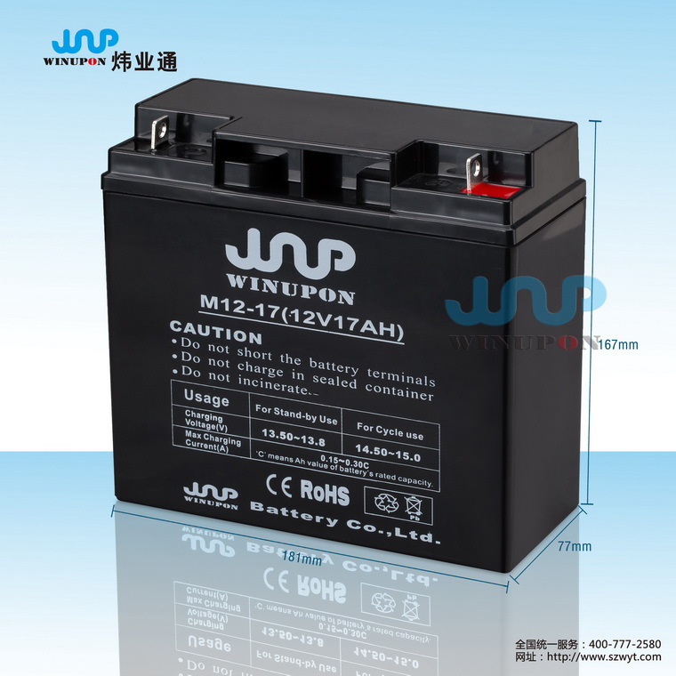 規格型號 | 12V17AH | 外形尺寸(±2mm) | 約重4.60KG | |||