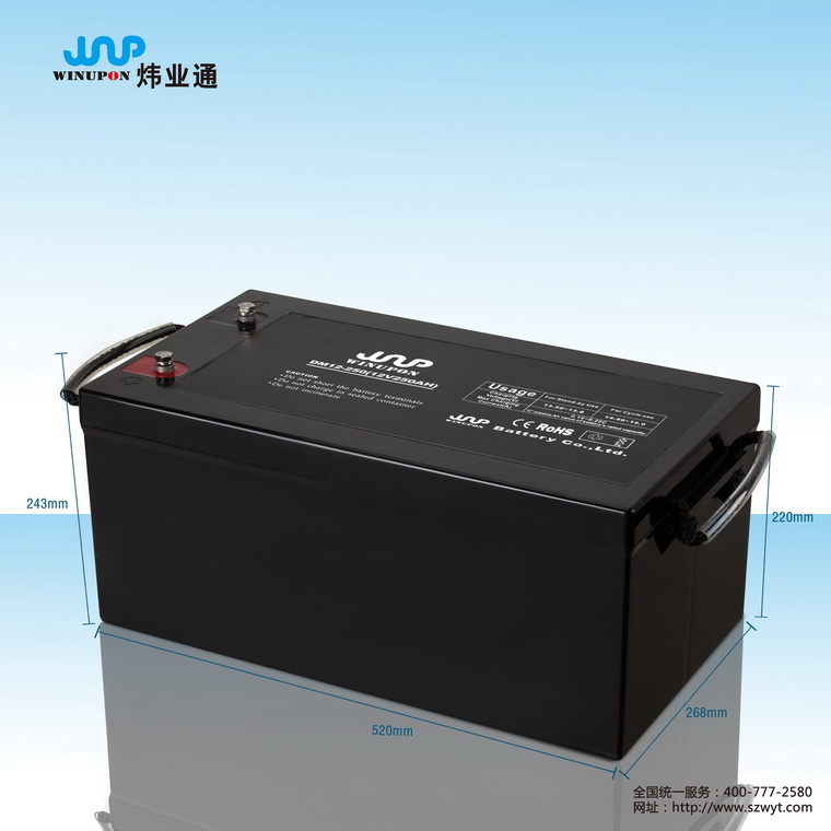 規(guī)格型號 | 12V250AH | 外形尺寸(±2mm) | 約重73.0KG | |||